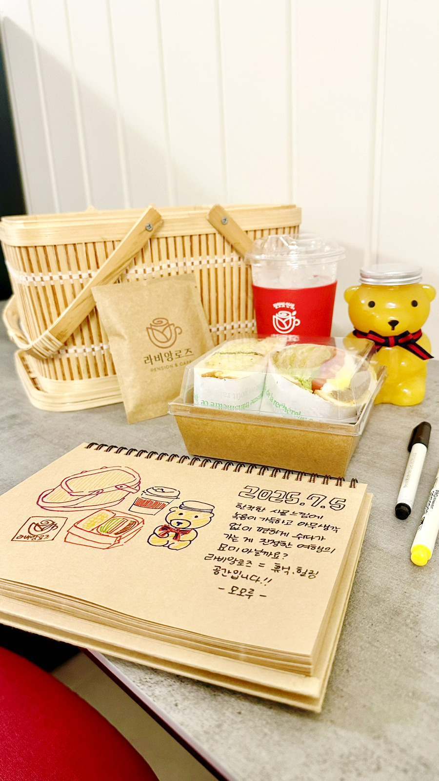 방명록도 적을 수 있게 바구니에 담겨 오는데