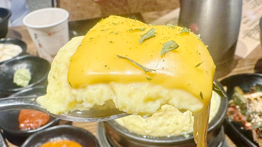 한 술 떠서 먹는데 따뜻하고 포슬포슬한
